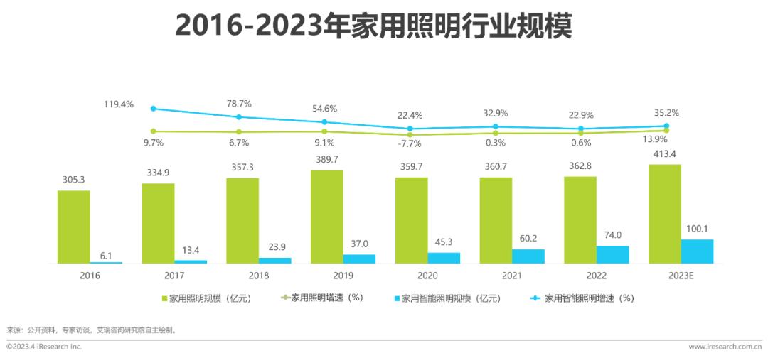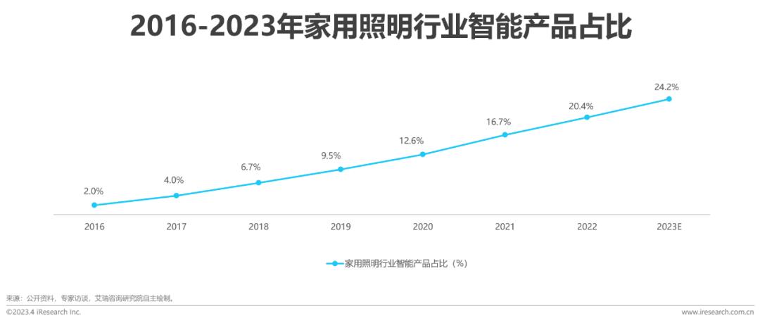 中国家用照明市场中智能产品提升显著,预计2023年将突破100亿