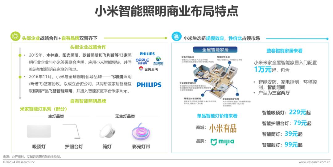 作为目前国内覆盖品牌最多的生态链企业之一,小米很早就在智能照明领域进行深度布局。除了与头部企业的战略合作,小米也拥有自己的智能照明品牌。同时由于小米生态链的规模效应,得以为消费者提供低价优质的智能照明产品。