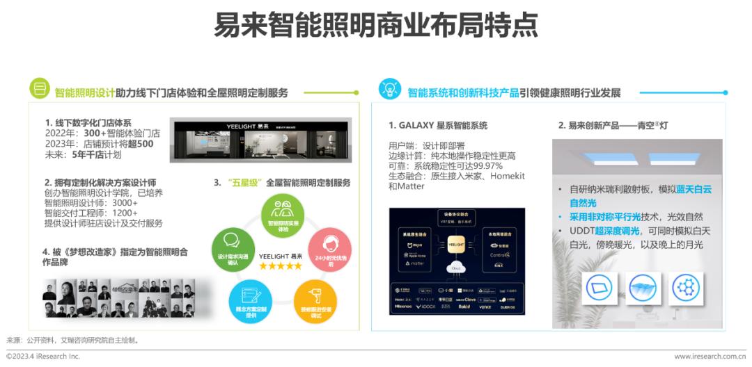 易来照明作为专业的智能照明品牌,主要在智能交互,工业设计和灯光体验方面深入打磨,是业内最早布局线下智能体验门店的照明品牌之一。在照明人才培养方面,易来首创智能照明设计学院,持续培养智能照明设计师,并将人才应用到线下门店当中。在健康照明方面,青空灯是业内比较有亮点的产品。