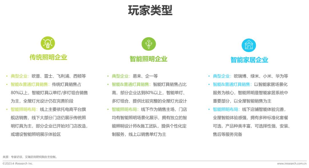智能照明产品的销售企业,根据业务核心的差异,可被分为以下三类