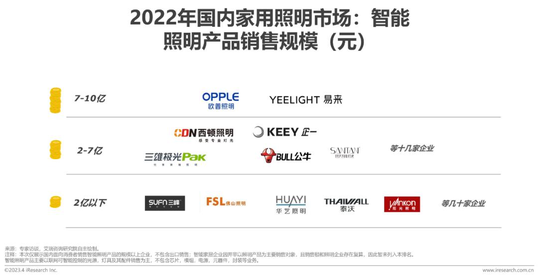 家用智能照明:22年销售额梯度(照明企业)