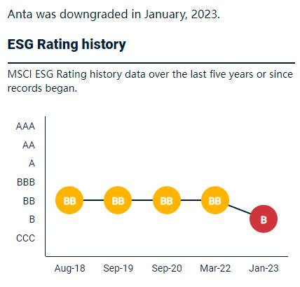 MSCI评级机构对安踏集团的ESG评级历史,来源:MSCI官网