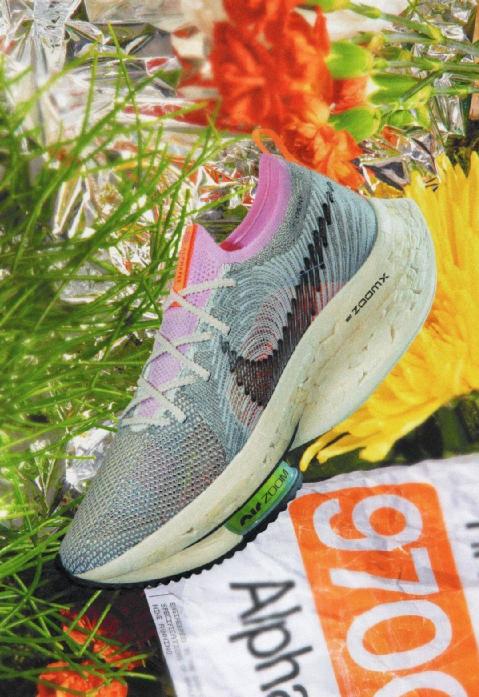 2021年,Nike推出以再生面料为材质的产品Nike Air Zoom Alphafly Next Nature。产品的鞋面织物全部来自于Zoom Air气垫的生产边角料,经过3D打印成型。同时,整双鞋使用再生材料的重量占比高达50%。