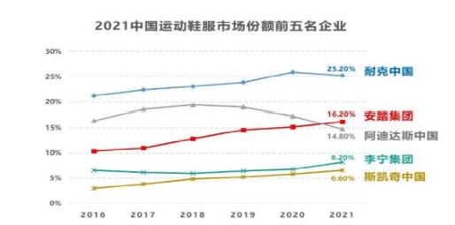 在国产品牌崛起的背景下,自2021年起,安踏体育( 02020.HK )营收已超越竞争对手李宁,稳坐国内中国运动鞋服市场第一品牌,并开始超越阿迪达斯中国,对标国际顶级运动品牌耐克中国。
