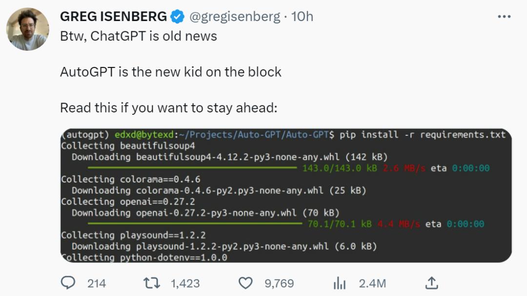 不仅如此,还有人声称 ChatGPT 已经过时了,AutoGPT 才是这个领域的新成员。