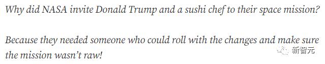 「为什么NASA要邀请特朗普和一个寿司大厨去参与他们的太空项目?因为NASA需要有人来应付变化,并且确保任务不夹生!」