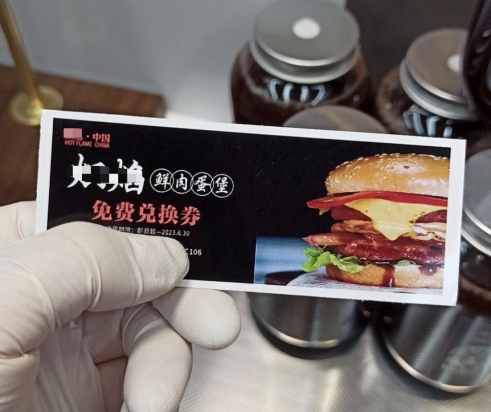 用来交换商场广告位的“汉堡免费兑换券”,受访者供图