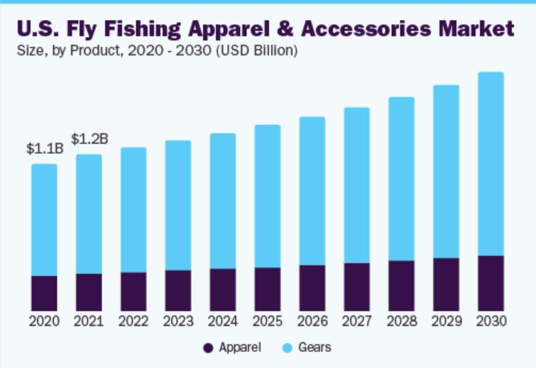 规模变化丨数据来源:grand view research2020~2030 年美国飞钓服装&装备市场