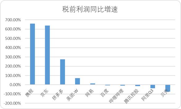 从增长率来看,携程因为逐步放开的疫情管理实现了税前利润的同比大幅度提升,而京东则是实现了扭亏为盈,因此同比增速也得到了大幅度提升。
