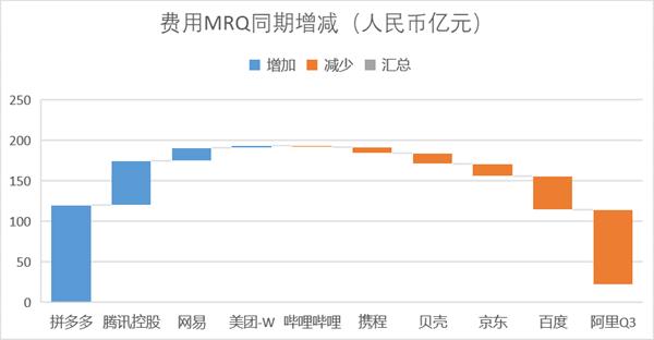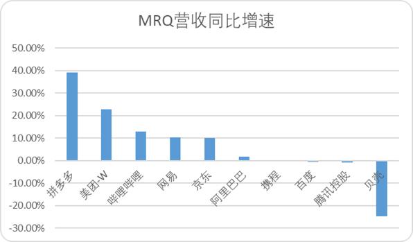 除此之外,长线来看拼多多的增速还是处于头部第一梯队,美团网易也有增长,而传统互联网巨头BAT三者都有不同程度的下降。