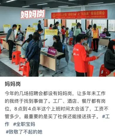 可以想见,“妈妈岗”这一概念,对于屡屡碰壁的妈妈们而言,几乎是救命稻草一般的存在。
