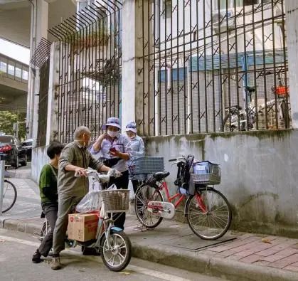 “益力多小姐”与街坊聊天。/@我改名字啦