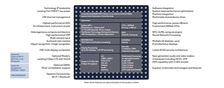 从高通骁龙8155的参数来看,它作为骁龙855的“车载版本”,这款芯片同样是7nm制程工艺,CPU采用1+3+4的8核设计,核心采用Kryo485,CPU算力达到了105K DMIPS,GPU则采用了Adreno 640,GPU算力超过1000 GFLOPS。