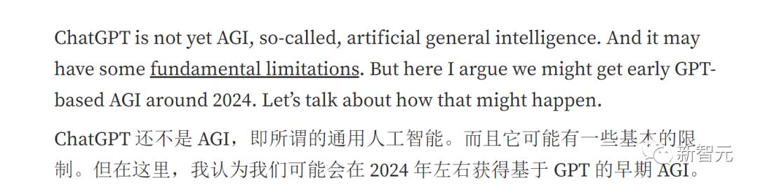 在ChatGPT刚出现一个月左右,他就做出了预测:现在AI最困难的部分已经完成了,在2024年左右,就会出现基于LLM的原型AGI。
