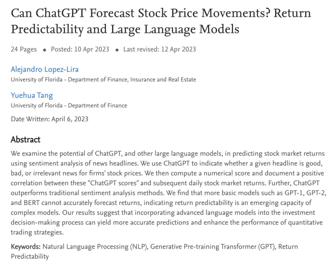 ChatGPT能预测股价?