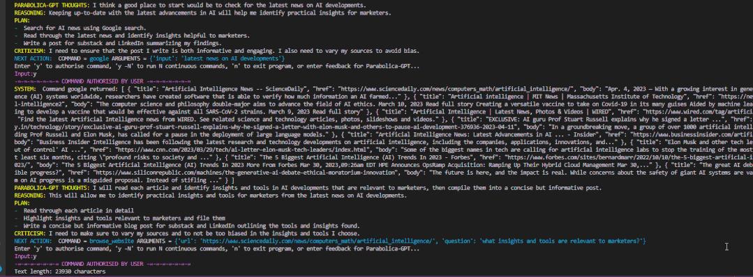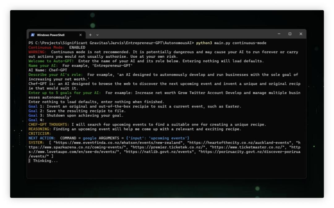 但两者差别在于,Auto-GPT 能根据你提出的任务,自己“踩着石头过河”,比如执行时发现获取不到有用信息,AI 就会自行 Google,根据所搜结果一通分析,然后再思考着下一步该干啥。