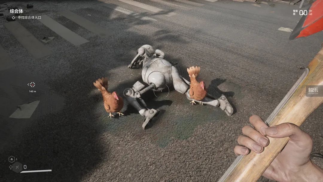 教程也告诉你,潜行到一些机器人背后可以直接给他们关机,实现背刺一击必杀的效果。这听起来似乎有点意思,但第一,真正难打的机器人是没法背刺的;第二,哪怕是那些普通的小白人,背刺时还要先过一个QTE,如果QTE失败,敌人就会挣脱,还是得正面开打。