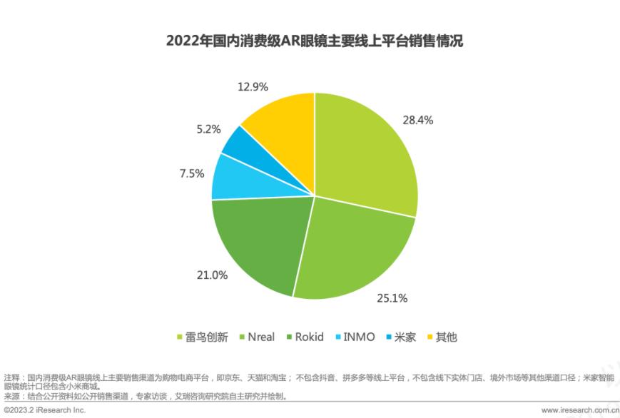 产品上,2021年雷鸟创新就推出了首款产品;规模上,艾瑞咨询发布的2022年国内消费级AR眼镜主要线上平台市场销售报告显示,雷鸟创新以28.4%的份额位居行业首位。