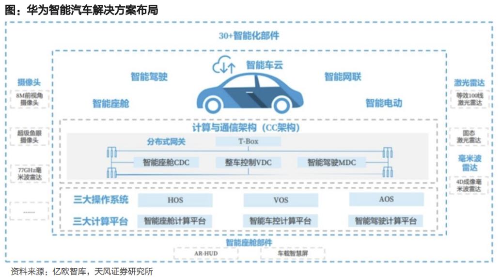 具体来说,HI方案包括1个全新的计算与通信架构和5大智能系统,依托华为在ICT领域的能力,该模式采用了“传感器-芯片-OS-算法与开发应用-云服务”的生态化布局。