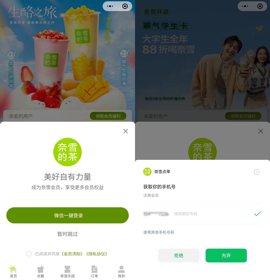 由于小程序可以跟微信账号关联,所以我们遇到一些需要登录账号的场景时,能直接用微信账号一键登录,这可太省事了——我去奶茶店买杯奶茶从扫码登录到点单付款,大概只需要十几秒就能完成。。。