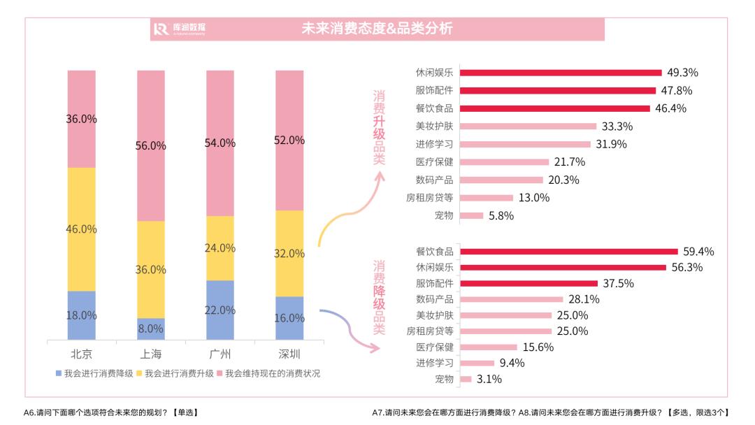 而大家想要消费升级或降级的品类均以“玩、穿、吃”为主,这些产品是我们日常消费较为频繁的品类,容易进行消费迭代,而且这些品类在认真挑选、做好功课后,不容易感到生活品质断崖式下降。
