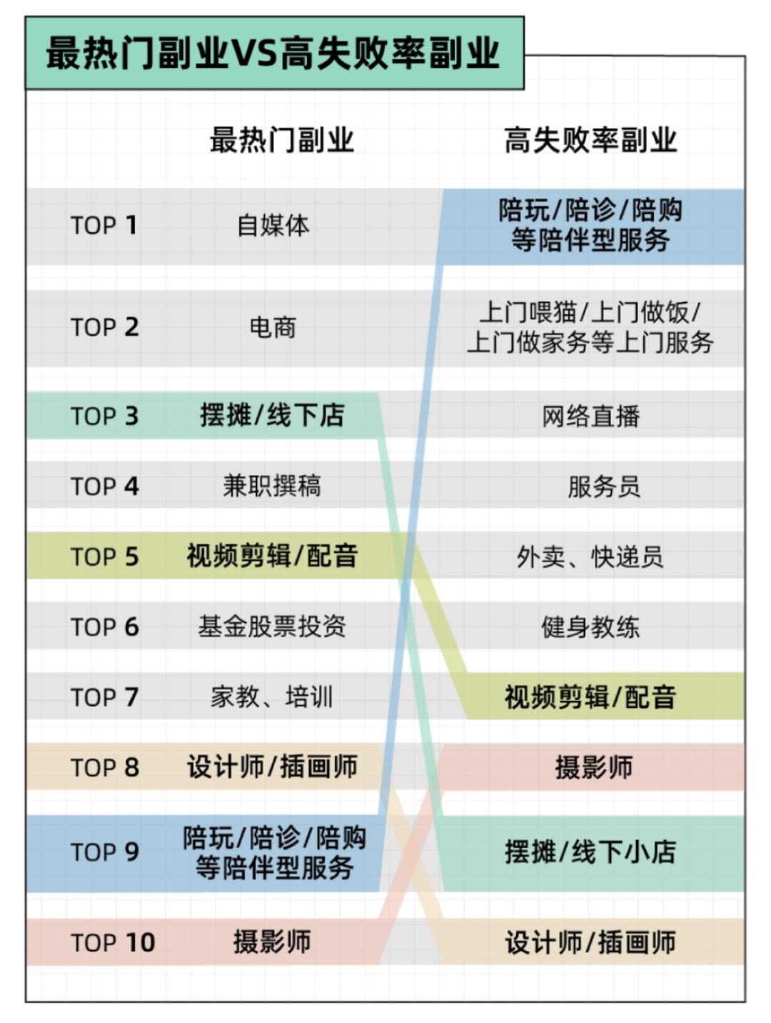 那些没有从事过副业,但一直跃跃欲试的小伙伴,欢迎参考后浪研究所在《2023年轻人副业报告》中出示的高失败率副业,及时避雷……