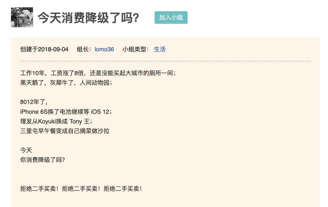 豆瓣小组「今天消费 降级了吗」