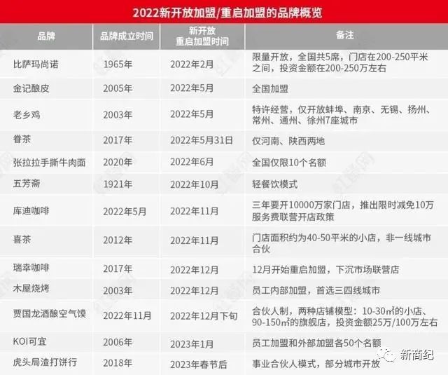 可能受制于疫情的影响以及资本风险的考虑,许多原来承诺不做加盟的品牌商,在去年纷纷开启了加盟模式。比如成立已有十年的喜茶,在去年11月份宣布在非一线城市开放加盟;成立近20年的木屋烧烤,在去年12月份公开表示开放员工内部加盟......