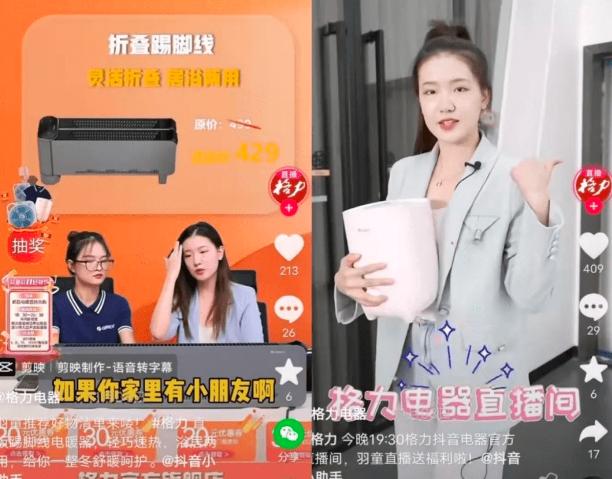 孟羽童在格力直播间进行带货直播......