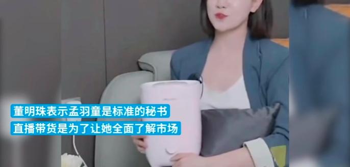 后来,随着格力直播带货的兴起,随着孟羽童的出镜,很多人质疑她是不是“秘书”,董明珠表示:“孟羽童是标准的秘书,直播带货是为了让她全面了解市场。”