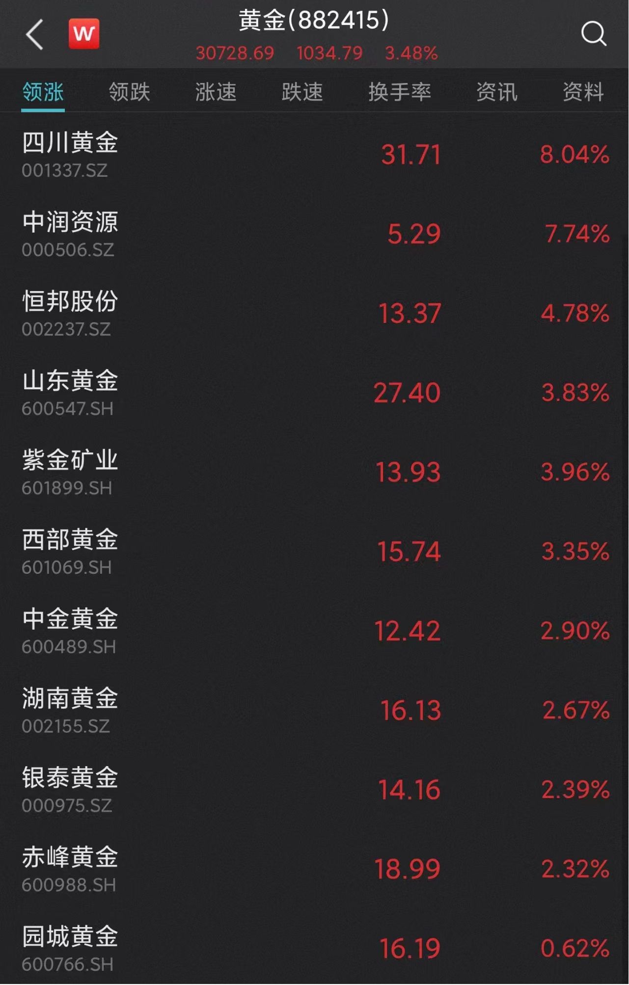 黄金板块集体拉升,四川黄金大涨8%,中润资源涨超7%,恒邦股份、山东黄金、紫金矿业、西部黄金等跟涨。
