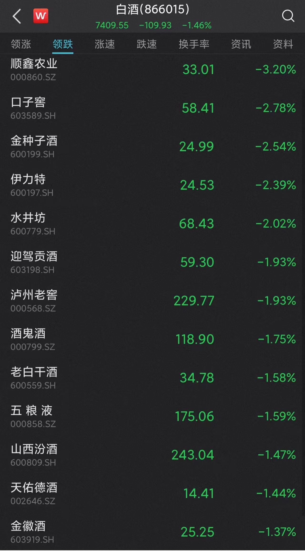 白酒股午后走低,贵州茅台、泸州老窖、山西汾酒、洋河股份、今世缘、舍得酒业、酒鬼酒纷纷下滑。