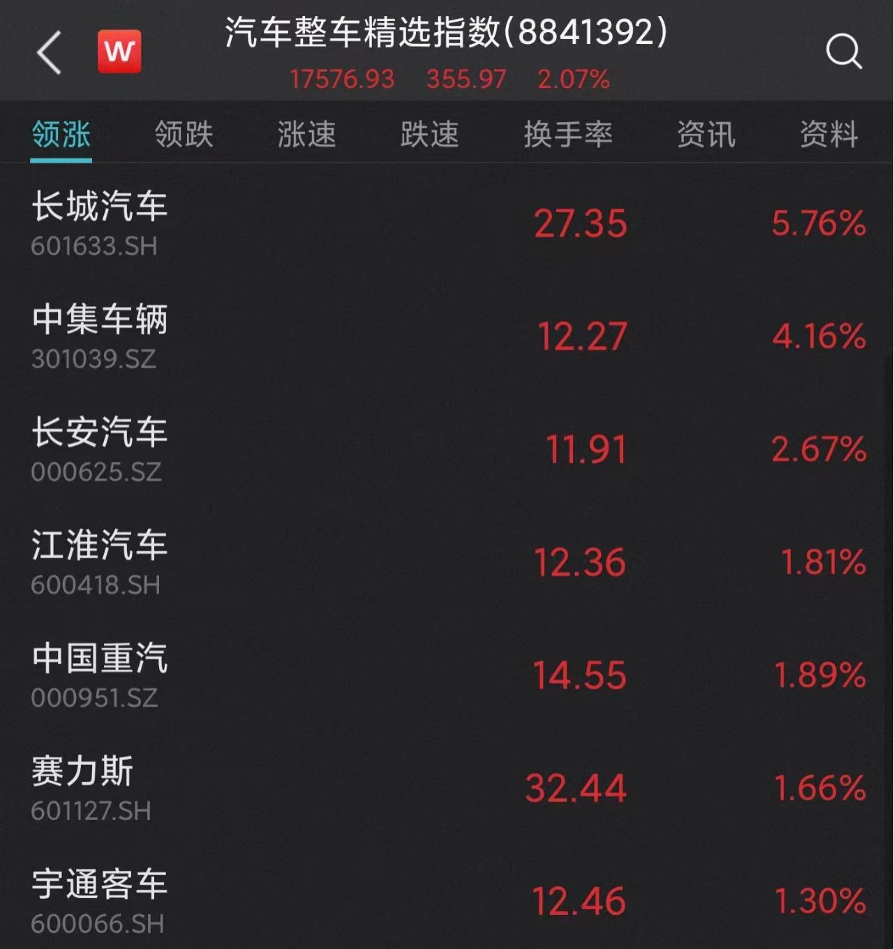 汽车整车股盘初走高,长城汽车涨超5%,中集车辆涨超4%,长安汽车、江淮汽车、中国重汽等跟涨。