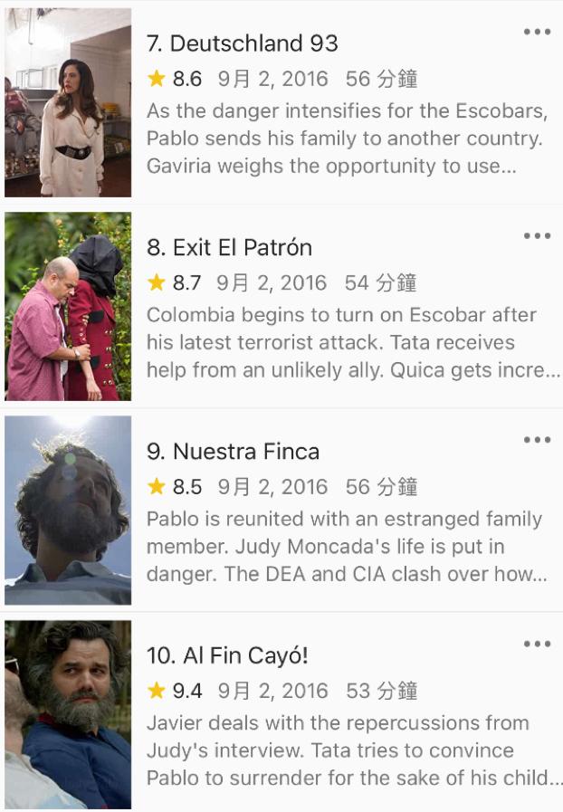 《毒枭》第二季第10集《Al Fin Cayo》评分为9.4分,这一集讲述了巴勃罗之死,展现了枭雄末路的悲凉。