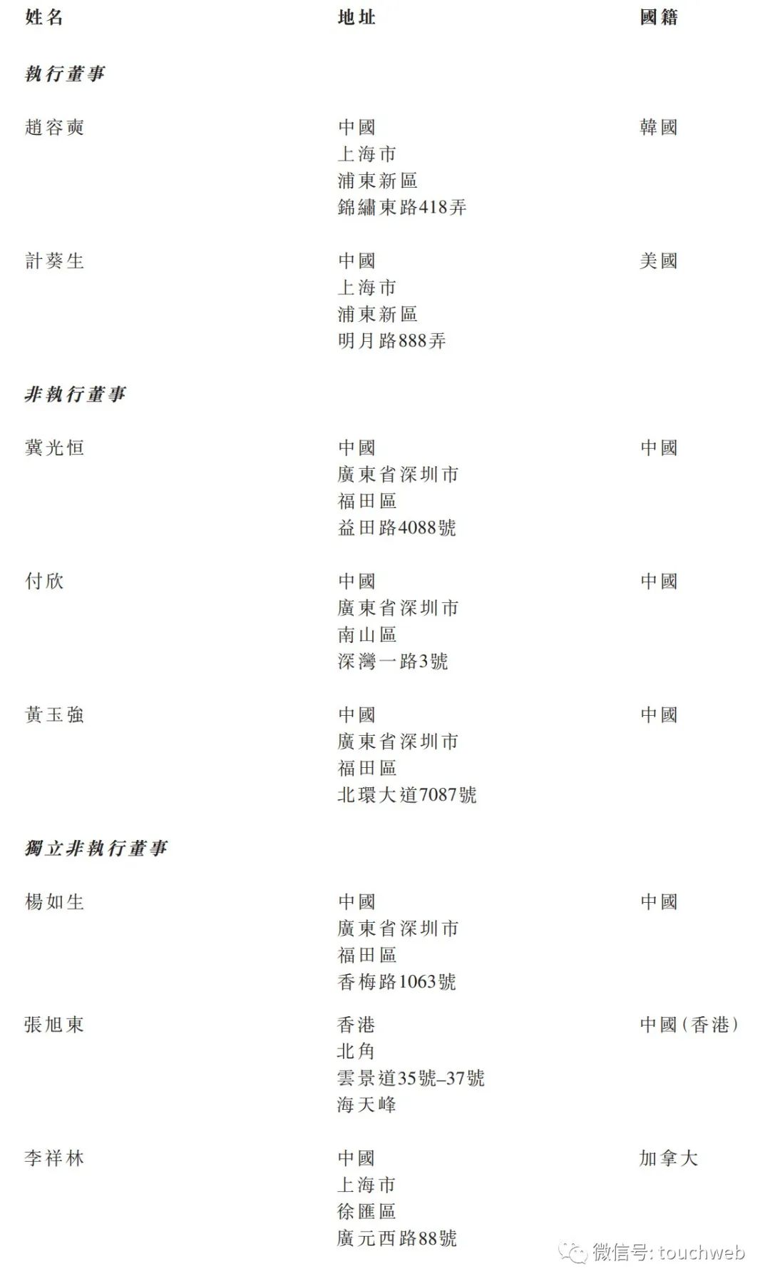 陆金所执行董事分别为赵容奭、计葵生;非执行董事分别为冀光恒、付欣、黄玉强;独立非执行董事分别为杨如生、李伟东、张旭东、李祥林。