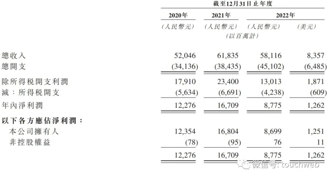 招股书显示,陆金所2020年、2021年、2022年营收分别为520.46亿元、618.35亿元、581.16亿元(约83.57亿美元);净利分别为122.76亿元、167.09亿元、87.75亿元(约12.62亿美元)。