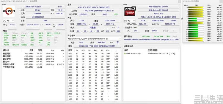 与此同时,虽然AMD此前一直声称自家产品使用的是“全大核”设计,但用过锐龙7000系桌面版CPU的朋友想必就会发现,在其8核以上的版本中,CPU运行频率就可以很明显的看出被分为了“一高一低”两组集群,而不像以往那样,所有核心的频率都完全同步调整。