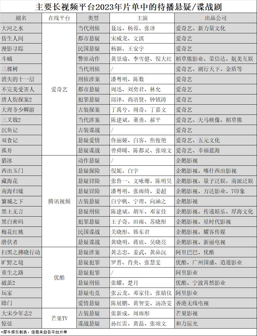 另一方面,作为悬疑大类下的谍战剧,在今年迎来了全面开花式的平台发力。