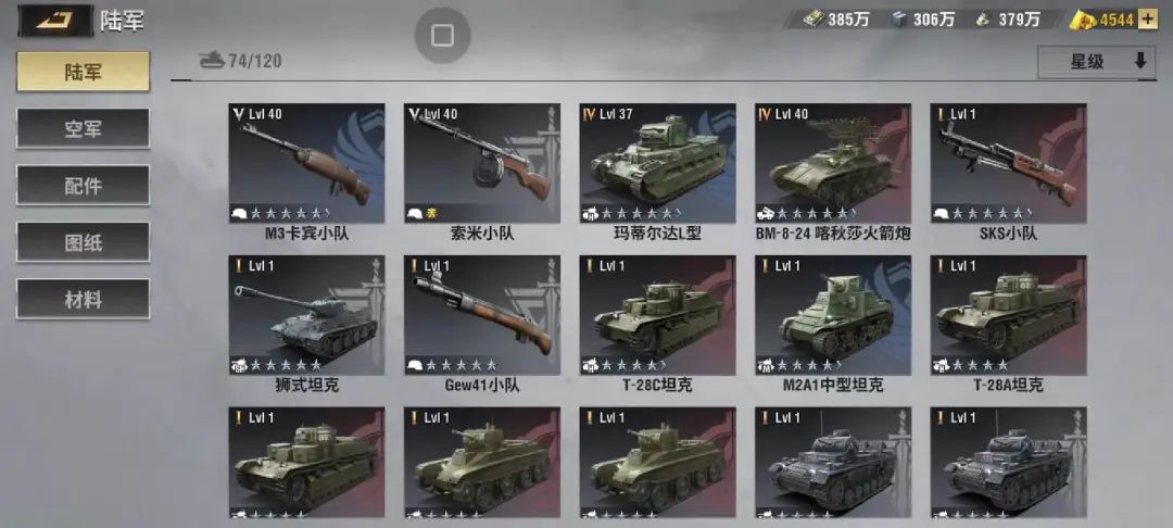 游戏在军事养成上则分类为了军官、兵种两部分,而玩家每一支部队也是由2名军官+1个兵种组合而成。其中,兵种主要提供作战形态(坦克、空军、步兵等)以及数值效果;军官主要提供主动技能以及增益技能效果,并提供少量的数值。