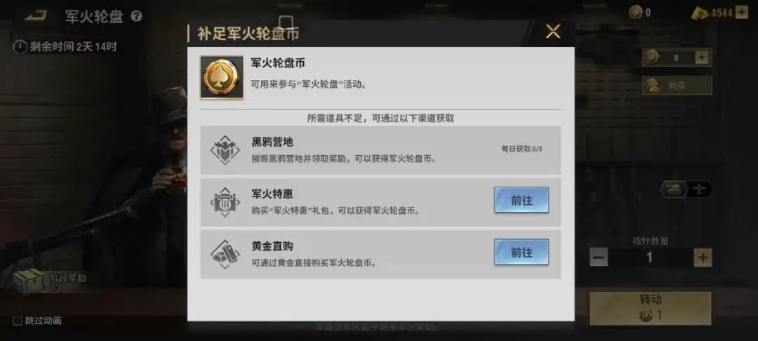 其次,游戏在战区环节中加入了大量与玩家进度息息相关的活动内容,例如:当玩家度过前期开荒阶段,具备一定战力水平后,游戏引入了需要玩家摧毁黑鸦营地获取代币的“军火轮盘”活动。通过活动的指引,让玩家知晓在不同阶段所需要做的事情。