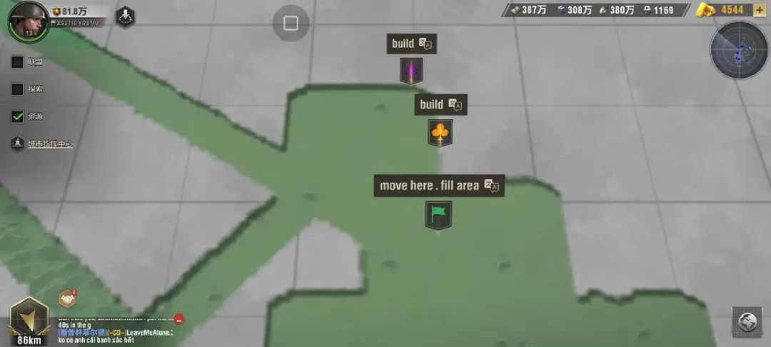 地图资源则主要包含资源建筑(农庄、矿山、油田)以及野怪形式的NPC(黑鸦部队、黑鸦)等。其中建筑资源需要玩家派遣采集车对基础资源进行采集,每次采集可维持1.5小时;野怪NPC则是需要派遣部队进行攻击,击败后掉落建材核心资源,玩家可以选择消耗体力领取掉落奖励。