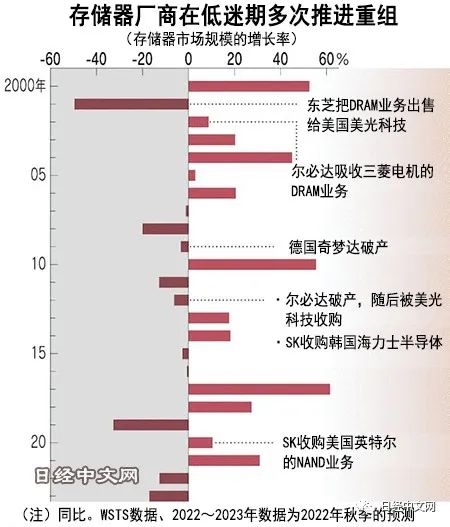 存储器行业具有尾部企业在低迷期被淘汰出局、不断诱发重组的历史。