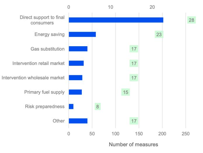 图3 各项措施类别及实施的国家数量(资料来源:ACER)