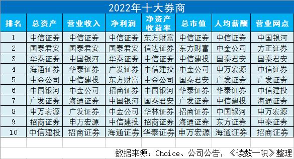 随着中国资本市场的改革和发展,证券行业的格局也在不断发生变化。券商2022年年报陆续出炉,谁才是中国证券市场上的十大券商?