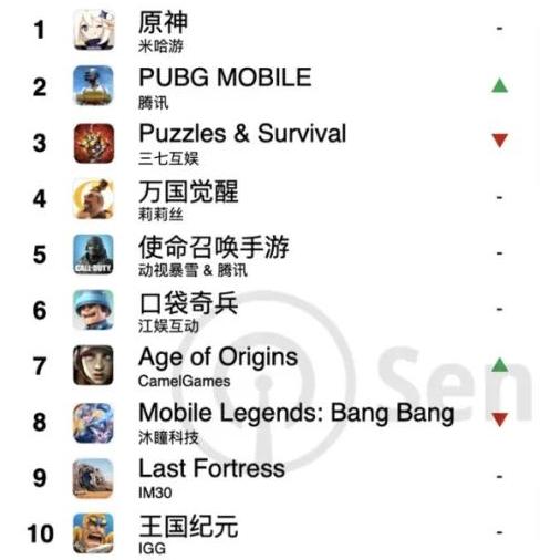 此外,Sensor Tower还发布了3月出海手游的下载榜。