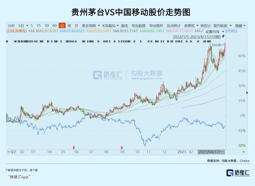当然,今日资本市场最重要的新闻莫非茅台盘中让出了A股市值股王之位。今年以来,中国移动大涨52%,贵州茅台上涨1.5%,整体表现迥异。
