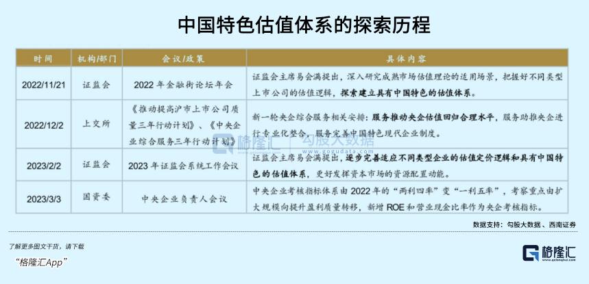 2022年11月,证监会主席易会满首次提出建立具有中国特色的估值体系,促进市场资源配置功能更好发挥。紧接着,上交所制定完成新一轮《推动提高沪市上市公司质量三年行动计划》和《中央企业综合服务三年行动计划》。