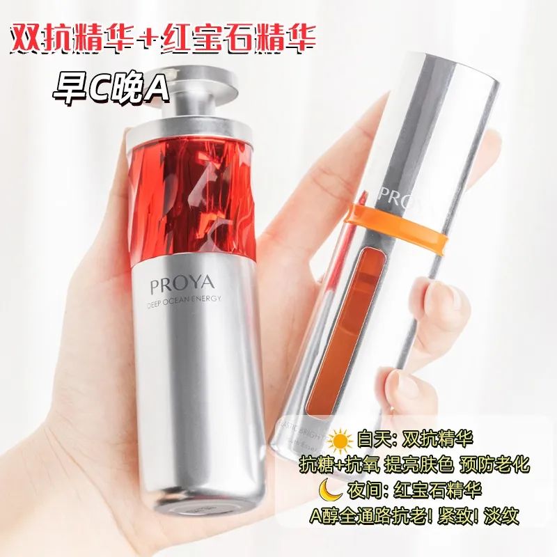 在早C晚A风靡之际,一些大品牌的CA组合就以CP形式“出道”,珀莱雅的双抗精华和红宝石精华总是成双成对出入,消费者磕得不亦乐乎,俨然护肤界赤手可热的明星抗衰CP。