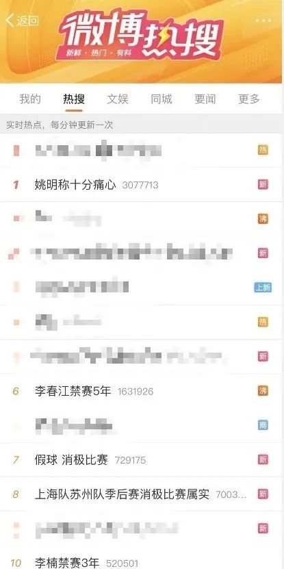 4月15日,上海队“逆转”江苏队后,7条有关CBA的热搜词迅速占领热搜榜,其中“假球”词条稳居榜一。这幕在最近发生了两次,一次是新疆男篮退赛,一次是女篮李梦感情事件。