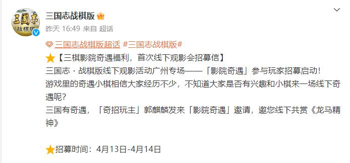 除了关于文化、题材等契合度的需求之外,《三战》也同样重视“玩家”。早期胡歌直播时对游戏内黑话的信手拈来让人感到意外。2021年5月,他们开办了玩家选代言人活动,通过“真玩家”德云社相声演员侯震的“搭线”,游戏邀请到了前文提到的首度代言游戏的郭德纲。除了广告的录制外,他们还拉上德云社为游戏玩家开展了专题相声演出等活动,并表达了代言明星对《三战》内容的认可。